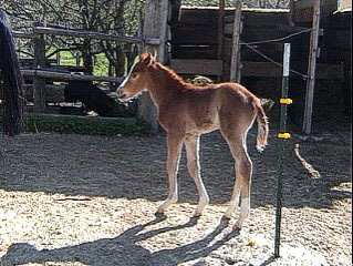 Wie man sieht , hat sie keine Lust auf Farbe , schauen wir mal , ob es unser Cats Lads Last Magic schafft... ! ...............Auch er hatte keine Chance ! Fuchshengst am 16. 4 . 04.......und Stuti 2005 !!!